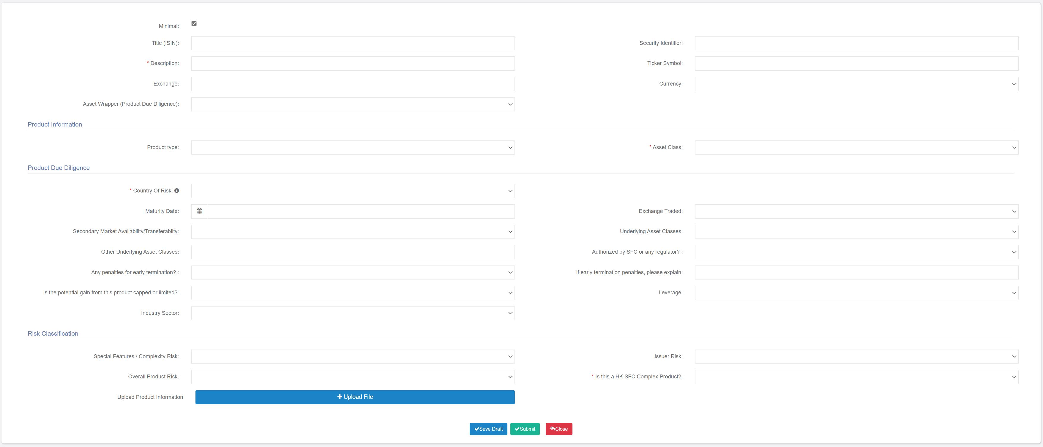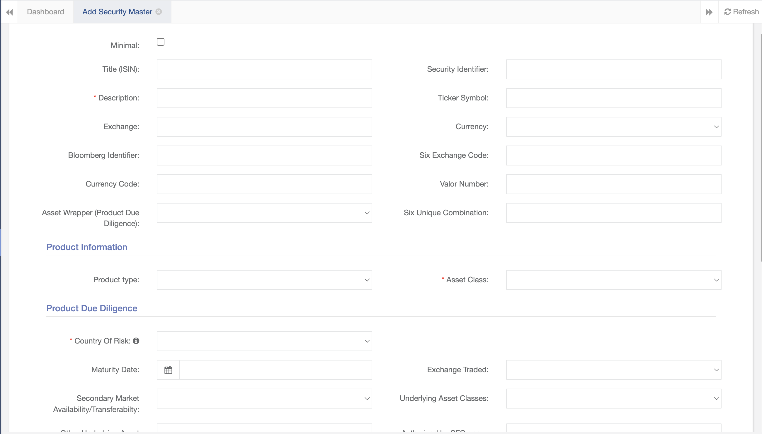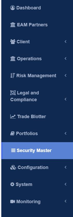 The Product Due Diligence Form can be accessing the ‘Security Master’ Tab and then clicking on ‘Add Security’.Step One
