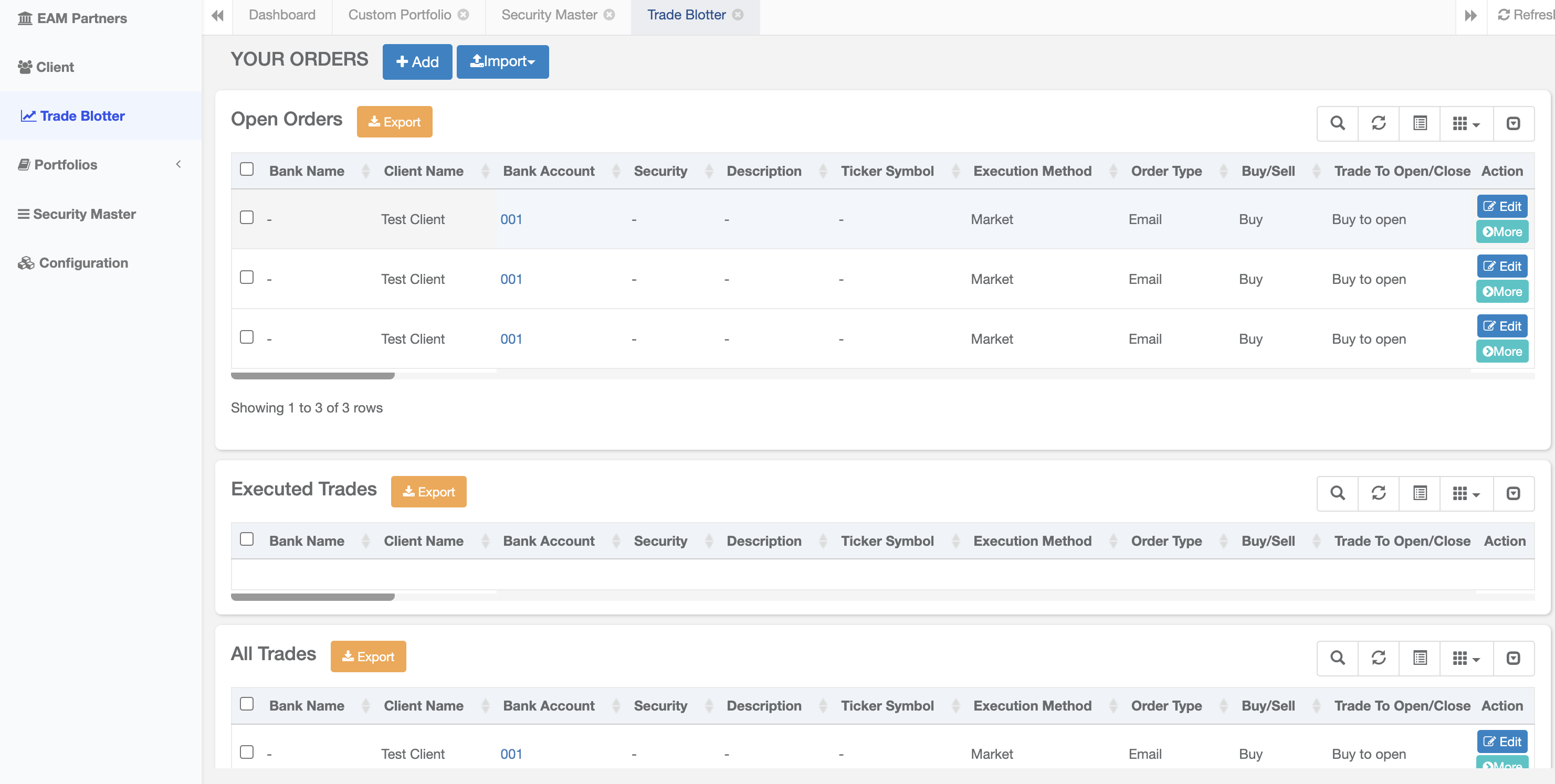 Portfolios should be created before trades are input in the trade blotter.
